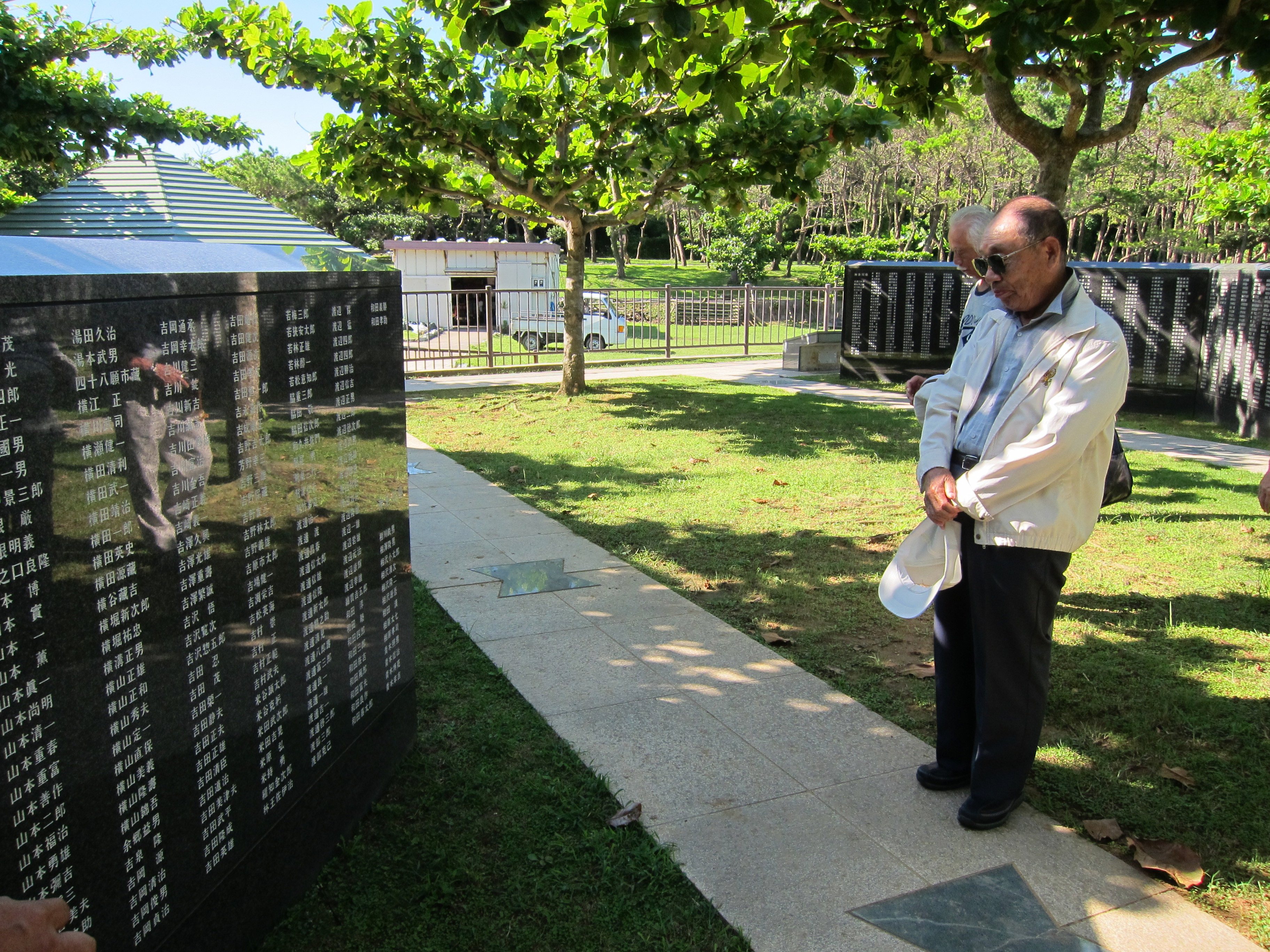 慰霊の日から二日後の朝、東京から来たうちの数名で平和記念公園の慰霊碑参りに行きました。私の親戚にあたる竹澤さんの叔父が沖縄戦で亡くなっていたのです。その名前の書いてあるのを初めて確認して、住職と共にご供養をしました。