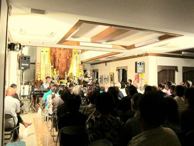 | 金城重明牧師のお話、古謝美佐子さん&佐原一哉さんの演奏 |